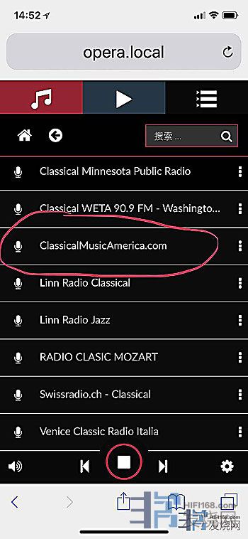例如这个美国古典音乐电台,输入:classicalmusic就会出来这个电台的全名,点击就可以收听。