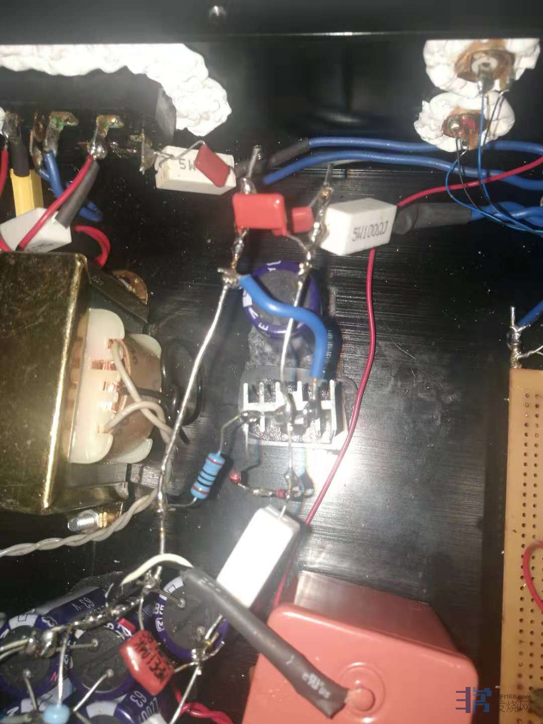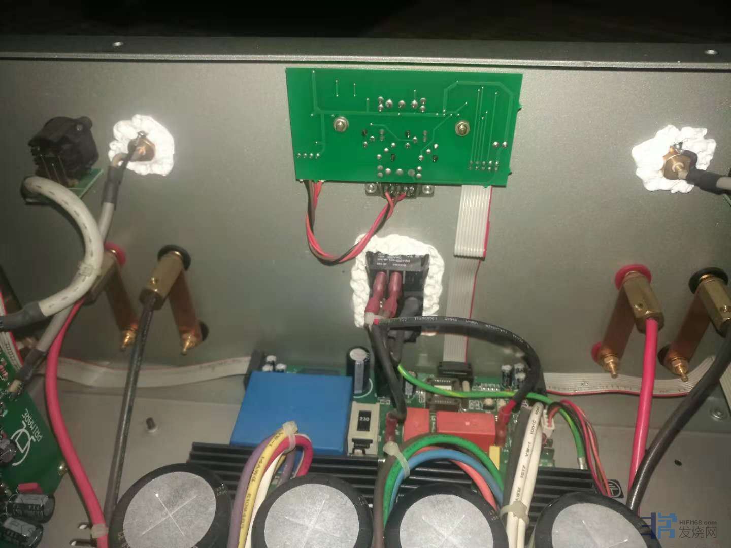 机壳底板能上泥胶就上,端子内外,电插,电容,外壳里面也上布贴,只用Faber Castell 泥胶。尤其是机内施工,更吃尽苦头因为有丝髮般的机内线。泥胶更不能沾上信号内线。