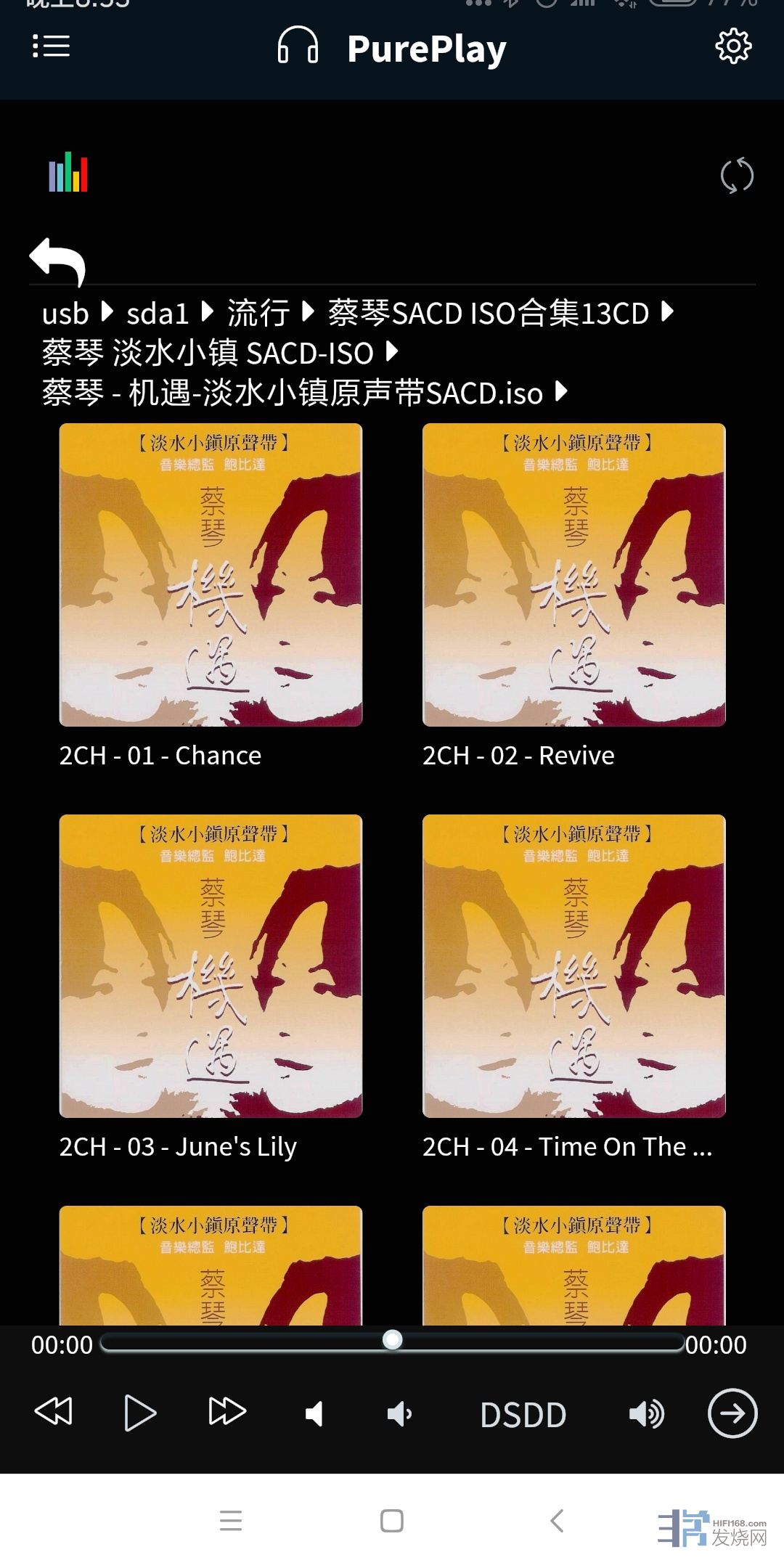 然后接上硬盘,通过手机APP选了几张也是港台流行的SACD ISO文件开声,小凤姐、蔡琴的声音都很浑厚圆润,邓丽君的声音也柔顺温和密度十足!而王菲“天空”开始时的低频下潜却让我吓了一跳,我有这张头版CD但N年没听过了,有立即找出来对比的冲动,但一时实在想不起放哪了。