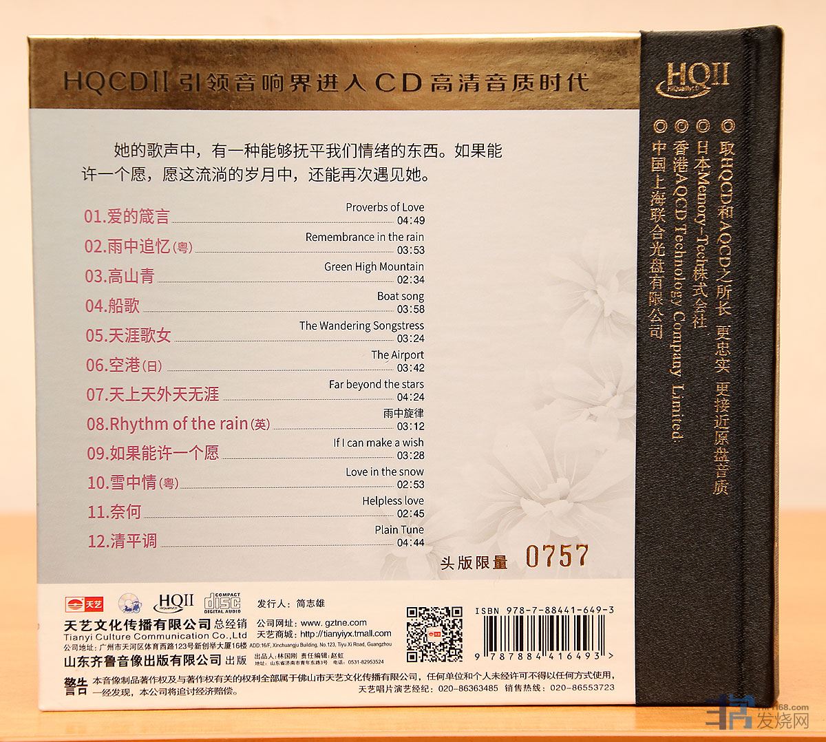 唱片以HQCD II出版,是目前性价比最高的CD格式了。唱片头版限量3000张,每张都有烫金独立收藏编号。