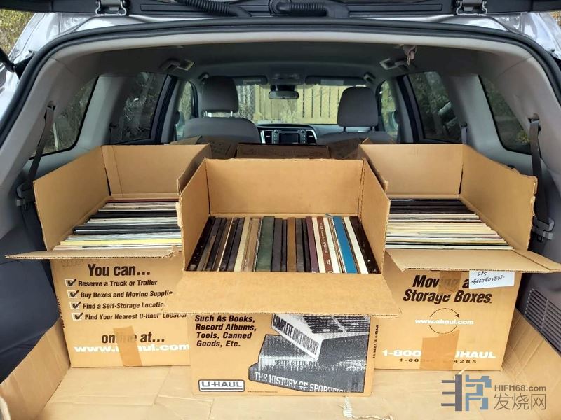 周日,单程2.5小时车程,上午10点到达某公共仓库(Public Storage)。该地有2500+黑胶唱片,绝大多数为古典,分装在30多个纸箱中,以箱为单位定价出售。仓库主人给俺1个小时时间挑选及完成交易,俺和她11点必须走人。怎么挑?俺只能每箱随机看几张,先挑出了11箱。其中有几个半箱或不太满的,经与主人协商,俺可以把每个箱子装满。于是,又是一通的找盘、塞缝。最后,比小时候买冬储大白菜还糙地塞满了10箱,约有900-1000张(还未清点)吧。11点完工,打道回府,顺路到某海滩玩了4个多小时,晚饭时分到家。