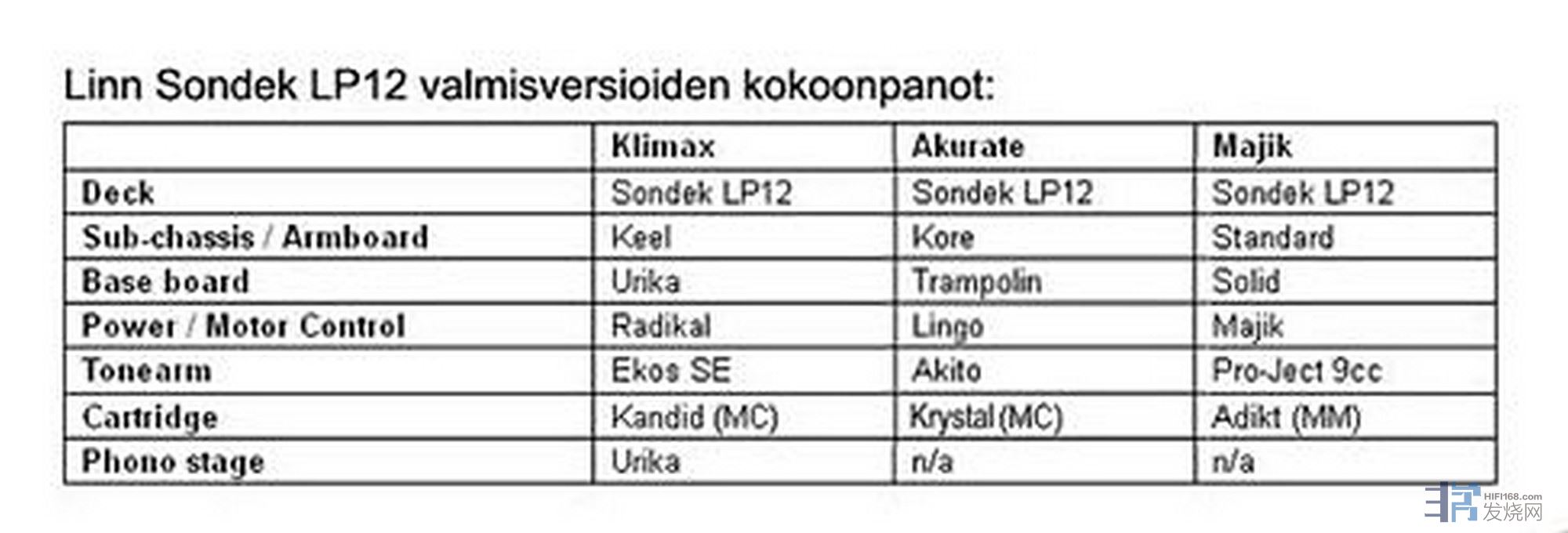 3个LP 12型号分别对应配置3个不同级别的唱头、唱臂、电源、底板等。