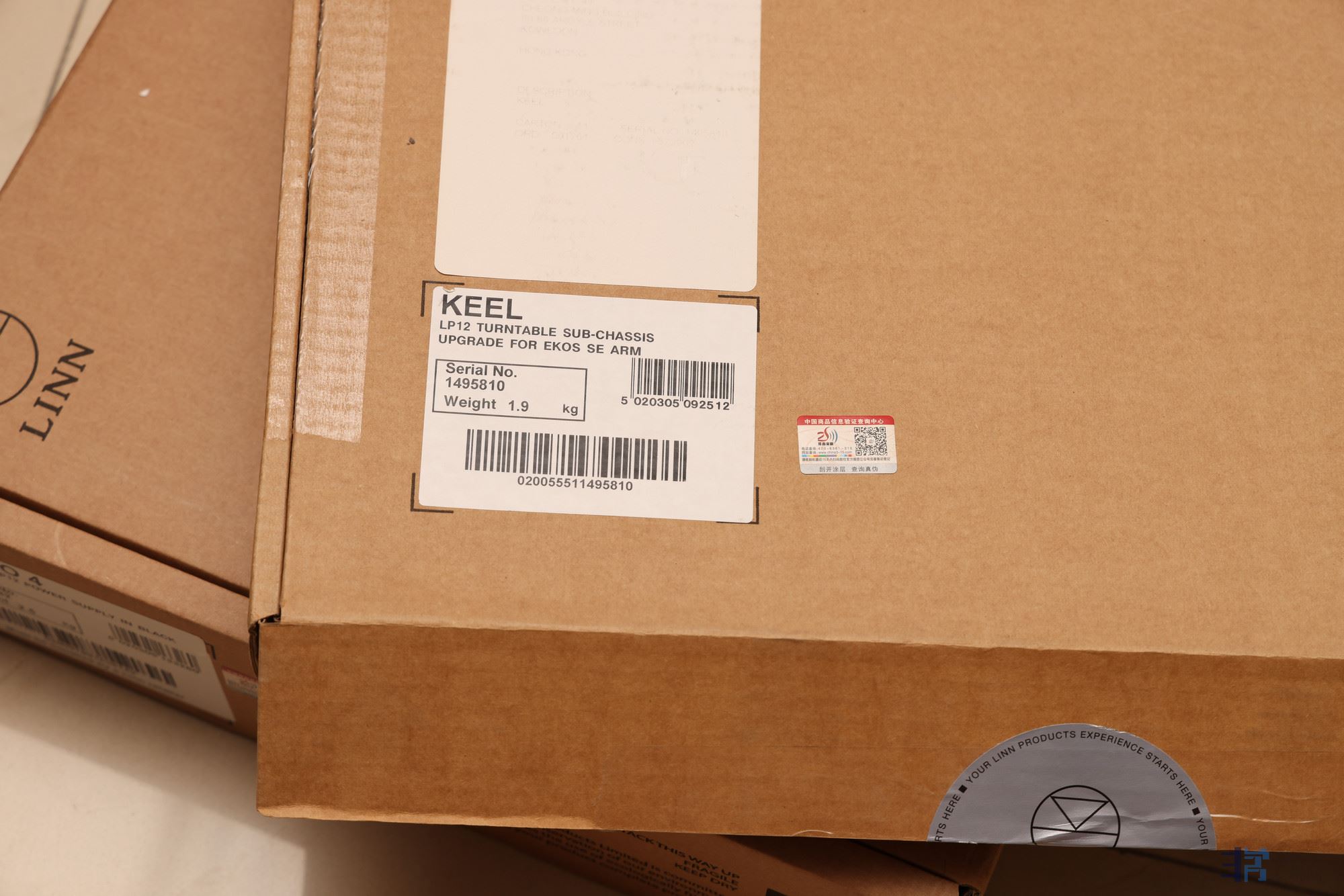 另外一个大包装是内有3个小包装,分别是KEEL副底板+唱臂板、电源、底板。