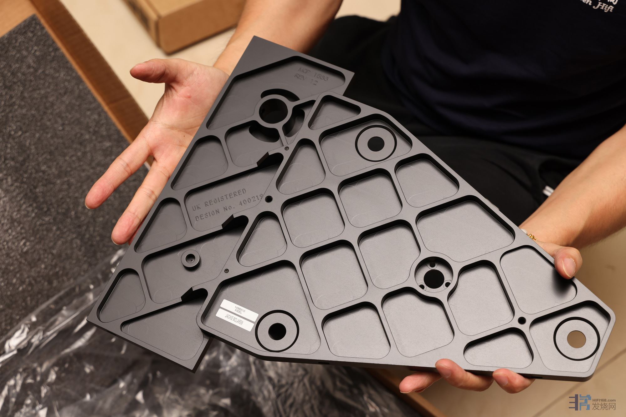Keel 副底板与唱臂板是采用一整块航天等级铝合金经CNC切削而成,底部还挖成不同厚薄的网状结构隔间。