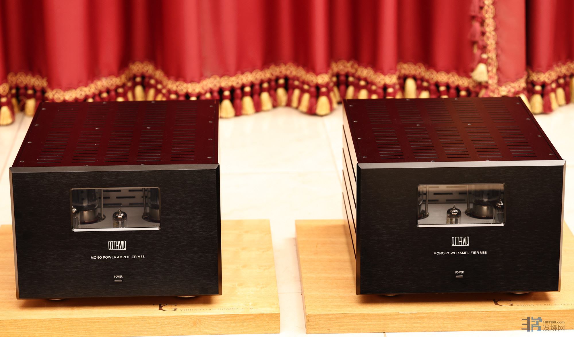 丽确M88单声道后级提供单边70瓦的强大输出功率,使用两支KT88、1支12AX7、2支12AU7,售价是4.8万元一台,9.6万一对。